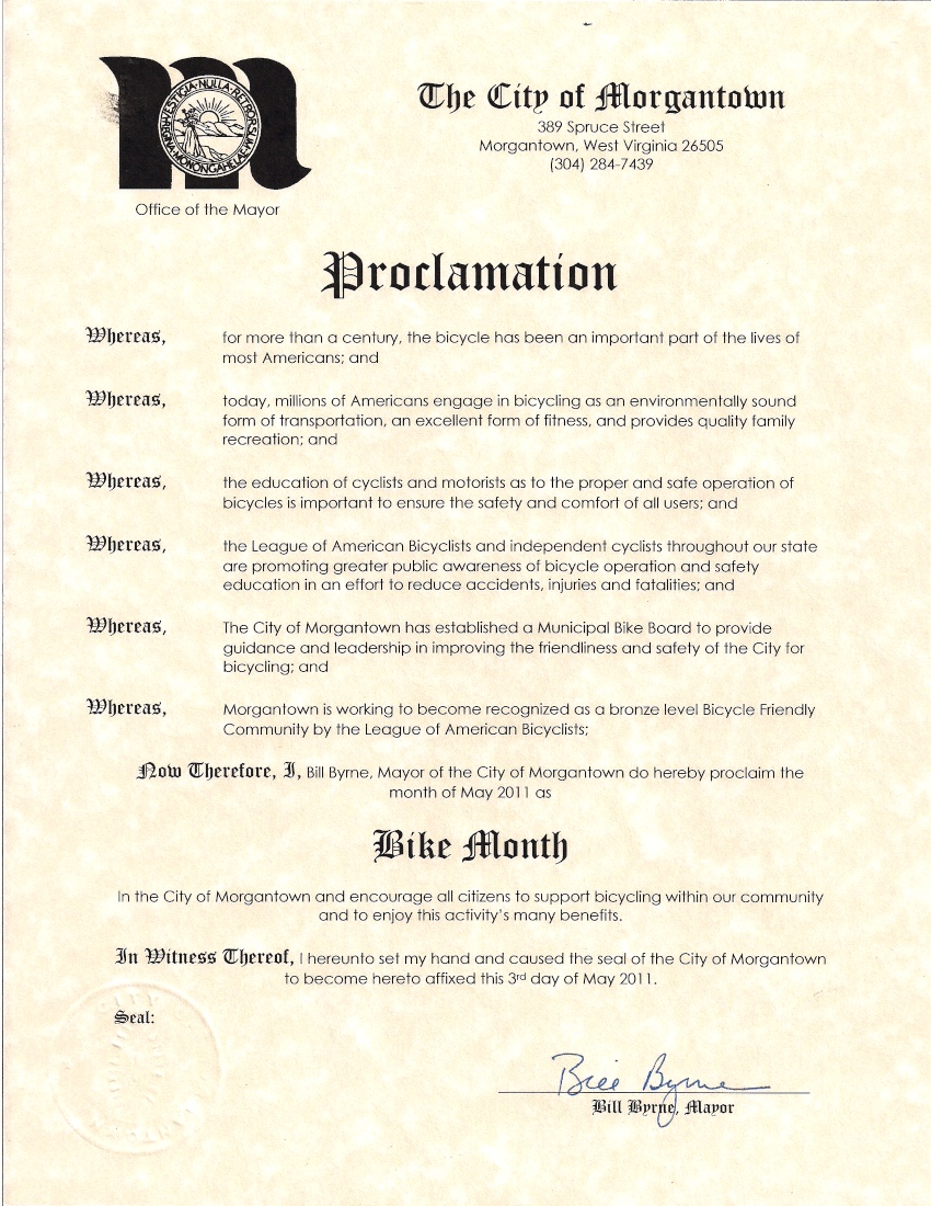 For at least the past 3 years, the Mayor has proclaimed May Bike Month in Morgantown (see attached). Should we make that happen again this year?