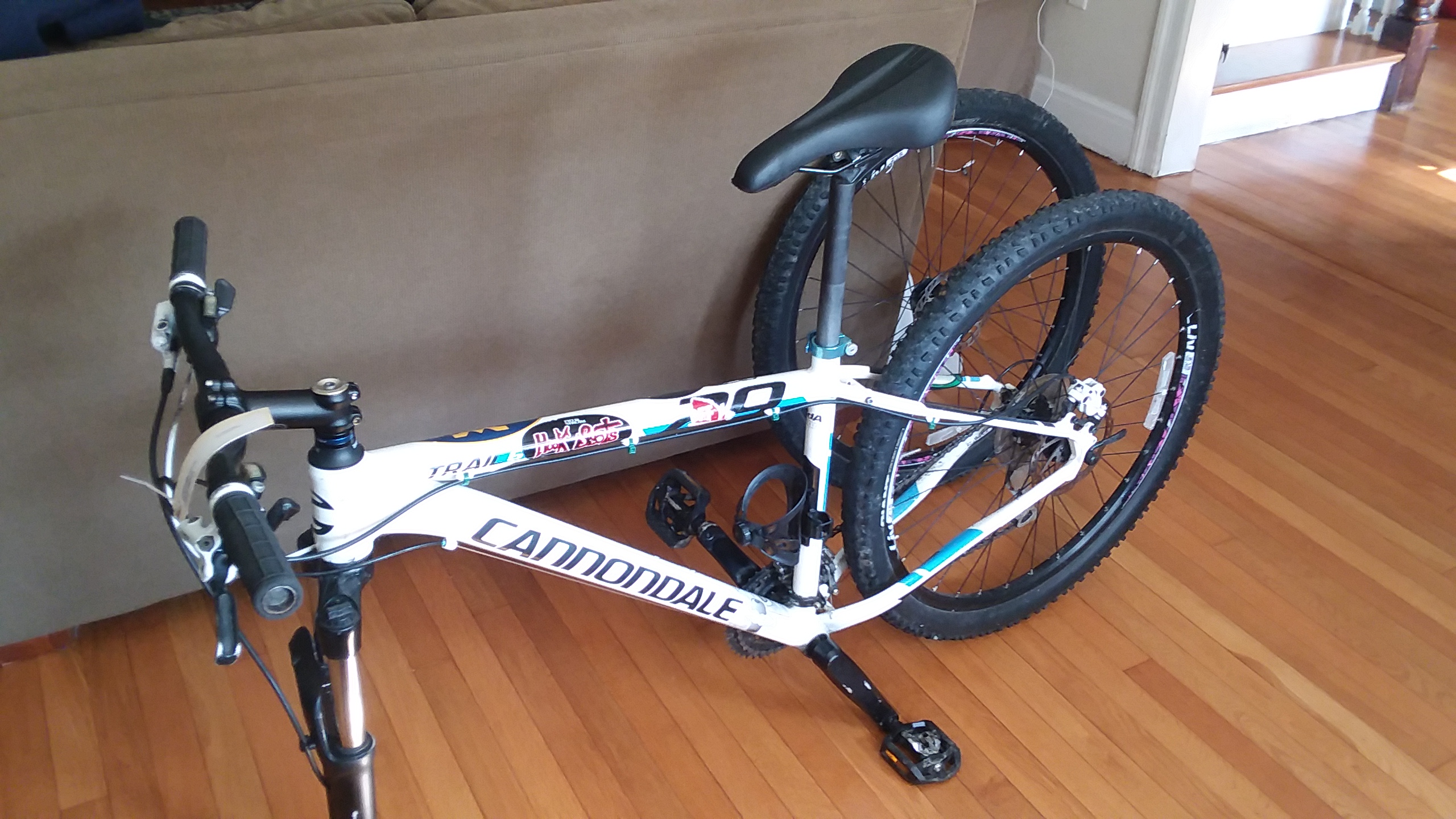 Many thanks to Capt McCabe & the MPD for finding my bike. Handlebars, brake levers, bottle cages & wheels swapped out, stickers added, components painted. Call MPD if your bike has been pilfered. They are finding a lot of bikes & components lately. My bike now has 27.5" wheels, if anyone wants them. Photos attached.Christiaan