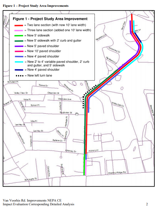 Friends - Please find a full report of the Van Voorhis environmental study. I've included a nice image from page 2 of the document that shows the improvements proposed for the entire length of the project. It seems a lot of new sidewalk for peds and shoulders/climbing lanes for bicycle riders have been included. I greatly appreciate that ALL public comments and responses to them are included in Appendix B of the online report. I am most excited by this response to numerous, numerous comments requesting additional sidewalk: "UPDATE - Following the virtual public meeting, DOH has re-evaluated the proposed sidewalk design and intends to modify the plans to include a sidewalk on one side of the road from WV 705 to the northern end of this project just south of West Run Road."