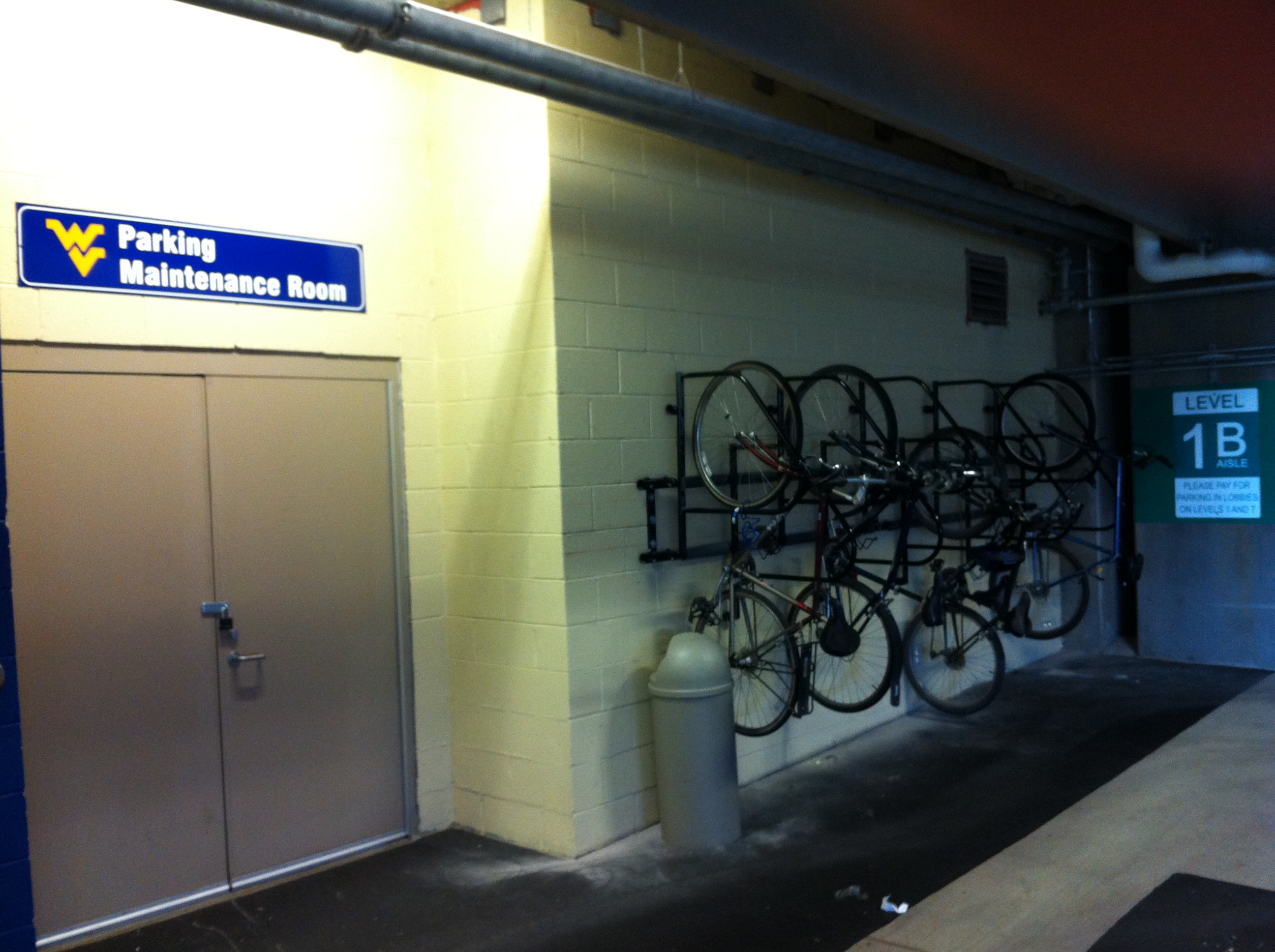On Hugh's watch, WVU established exemplary bicycle parking (the inverted-U racks) throughout campus. I was hoping to use their accomplishments as a model and lever to get the City to do more. Before Hugh left, we were discussing providing more sheltered bicycle parking (using old smoke shacks). I hope we can continue that. BTW, Jonathan Rosenbaum designed the campus inverted-U racks in collaboration with Hugh.
