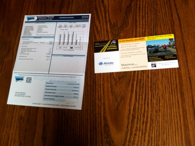 On behalf of the Morgantown Municipal Bicycle Board, I thank you and your staff for collaborating and cooperating to get the Bicycling Education inserts produced and inserted into MUB bills. As both bicycling and motoring continue to increase, the insert will provide guidance to both motorists and bicyclists on the rules of the road and hopefully make driving safer for everyone.