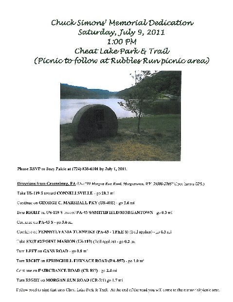 Chuck Simons Memorial Dedication: 1 pm, July 9th