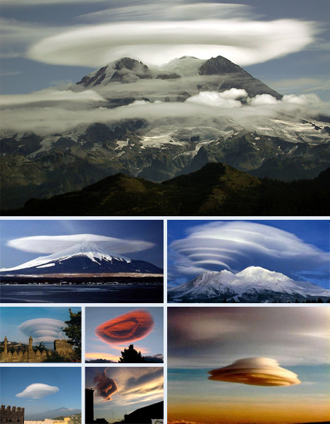 Generally, lenticular clouds are formed as wind speeds up while moving around a large land object such as a mountain..
