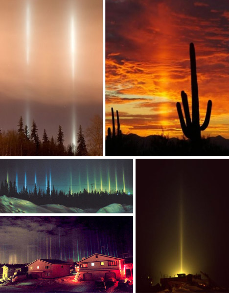 Light pillars appear as eerily upright luminous columns in the sky, beacons cast into the air above without an apparent source.