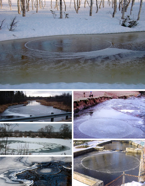 While many see these apparently perfect ice circles as worthy of conspiracy theorizing, scientists generally accept that they are formed by eddies in the water that spin a sizable piece of ice in a circular motion.
