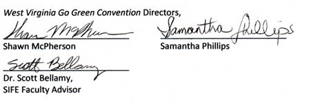 February 5, 2009 Dear Environmental Sustainability Professional: What is your business, organization, or corporation doing to sustain our environment? Do consumers know about your products and or services? Are you looking for a way to market your latest innovations while also trying to remain stable in such a fragile economy? If so, we, the West Virginia Wesleyan College Students in Free Enterprise (SIFE) team would like to invite you to be a part of the "2009 West Virginia Go Green Convention". This event was established to promote the greening of America's businesses and community through demonstrations of environmental sustainability practices and by exhibiting innovative "green" products, thereby supporting the education and networking of both consumers and producers. This convention has been endorsed by the state of West Virginia because of its vital contribution in keeping West Virginia both, "Wild and Wonderful." Our SIFE team's commitment to environmental sustainability sparked the development of this convention. We believe that through your support and participation in this convention, we can teach and promote a cleaner, healthier, more prosperous lifestyle. This convention can be a great opportunity for your company to respond to the ongoing "green" movement happening in America. More and more, customers are choosing products that are environmentally friendly. Our convention can benefit your organization by helping your business appeal to new customers face-to-face, while also developing networking relations. Furthermore, your organization can impact how consumers buy and think when making future purchases. This convention will also be a great opportunity for your business to gain some news media coverage through supporting the greening of America.